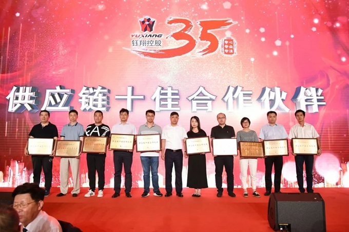 論壇現(xiàn)場還對大漢供應鏈有限公司、東嶺集團股份有限公司、浙商中拓集團股份有限公司 、浙江物產金屬集團有限公司、華南物資集團有限公司、上海寶合實業(yè)股份公司、重慶晉邦鋼鐵有限公司、合肥前樓物資有限公司、上海華磊企業(yè)發(fā)展有限公司、江陰運昌鋼鐵貿易有限公司等十家鈺翔控股集團“供應鏈十佳合作伙伴”進行了現(xiàn)場授牌。
