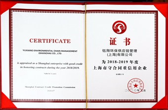 日前,鈺翔控股集團(tuán)旗下鈺翔環(huán)保供應(yīng)鏈管理(上海)有限公司、上海久源經(jīng)貿(mào)發(fā)展有限公司被評為“2018-2019年度上海市守合同重信用企業(yè)”,并榮獲AAA級合同信用等級認(rèn)定。