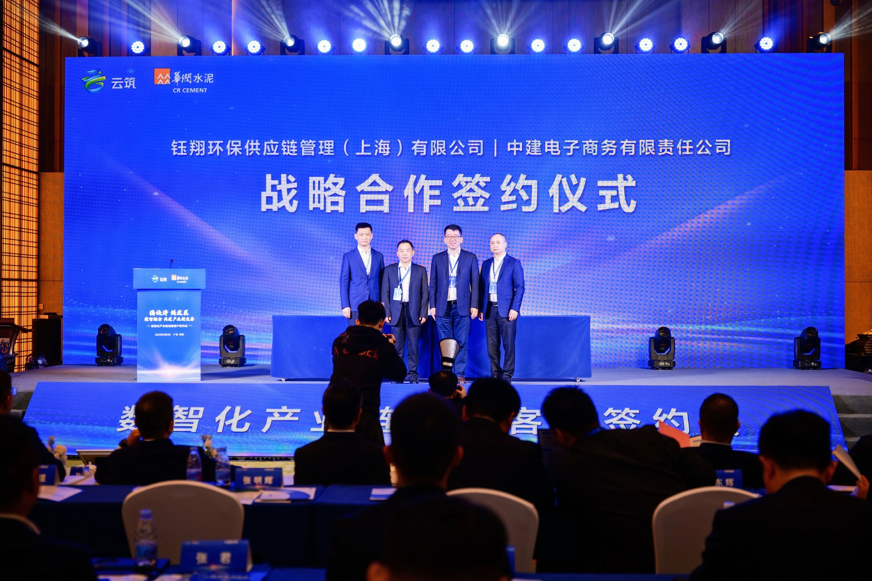 3月2日,鈺翔科技集團(tuán)旗下全資子公司鈺翔環(huán)保供應(yīng)鏈管理有限公司與云筑(中建電商)在深圳簽署戰(zhàn)略合作協(xié)議。本次簽約會上,云筑與鈺翔環(huán)保供應(yīng)鏈管理(上海)有限公司、華潤水泥投資有限公司、普洛斯產(chǎn)融科技有限公司分別簽署戰(zhàn)略合作協(xié)議。