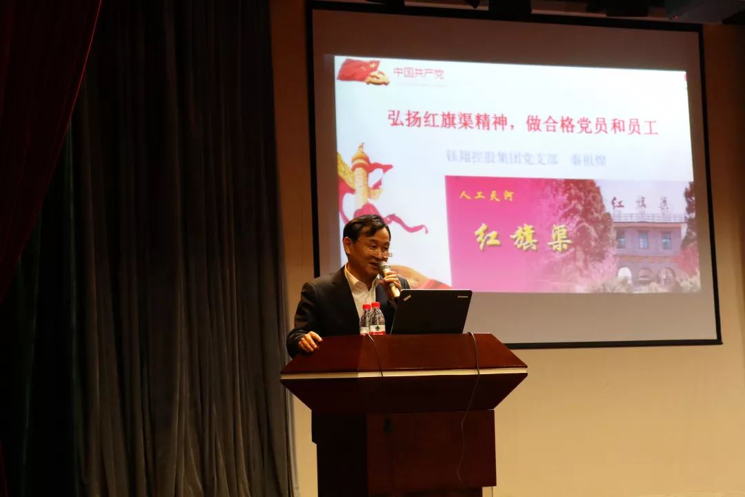 秦祖煌書記從紅旗渠工程的建設(shè)情況,紅旗渠精神的本質(zhì)內(nèi)涵,弘揚(yáng)紅旗渠精神、做合格黨員和員工三個(gè)方面進(jìn)行了講授。紅旗渠是20世紀(jì)60年代河南省安陽市林縣人民為解決用水問題,在極其惡劣的自然環(huán)境和極端匱乏的物質(zhì)條件下,以10萬血肉之軀苦戰(zhàn)十個(gè)春秋,從太行山腰修建的引濁漳河水入林縣的工程。紅旗渠全長1500公里,其中70.6公里的總干渠全部開鑿在峰巒迭嶂的太行山腰。紅旗渠被譽(yù)為“人工天河”、“中國水長城”、“世界第八大奇跡”,它的建成徹底解決了林縣人民的缺水問題,創(chuàng)造了巨大的物質(zhì)財(cái)富,更是孕育了“自力更生、艱苦創(chuàng)業(yè)、團(tuán)結(jié)協(xié)作、無私奉獻(xiàn)”的紅旗渠精神。秦書記在講授中講述了紅旗渠開鑿過程中一個(gè)個(gè)無私奉獻(xiàn)、不怕犧牲的感人故事,使現(xiàn)場員工非常感動(dòng),秦書記在授課結(jié)束前強(qiáng)調(diào),弘揚(yáng)紅旗渠精神、做合格黨員和員工首先要堅(jiān)定理想信念,其次要激發(fā)艱苦創(chuàng)業(yè)的熱情,再次要堅(jiān)持崇德守紀(jì),最后要堅(jiān)持黨和人民的利益高于一切。